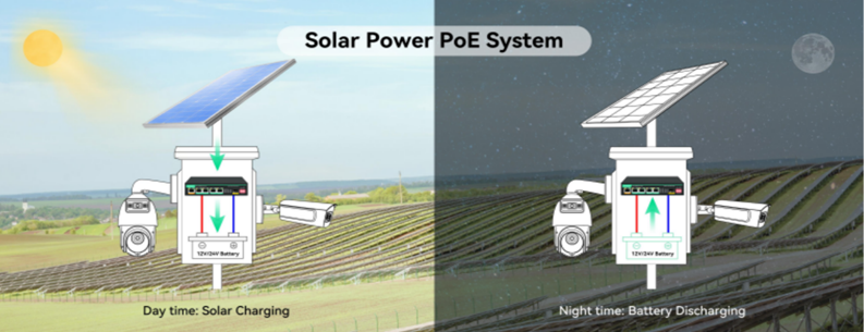 Si tratta di soluzioni professionali che possono supportare sino a quattro dispositivi IP alimentati in POE (telecamere, apparati wireless, ponti radio, …) da switches anche Layer 2 a bordo di armadietti che vanno montati a palo o a parete.