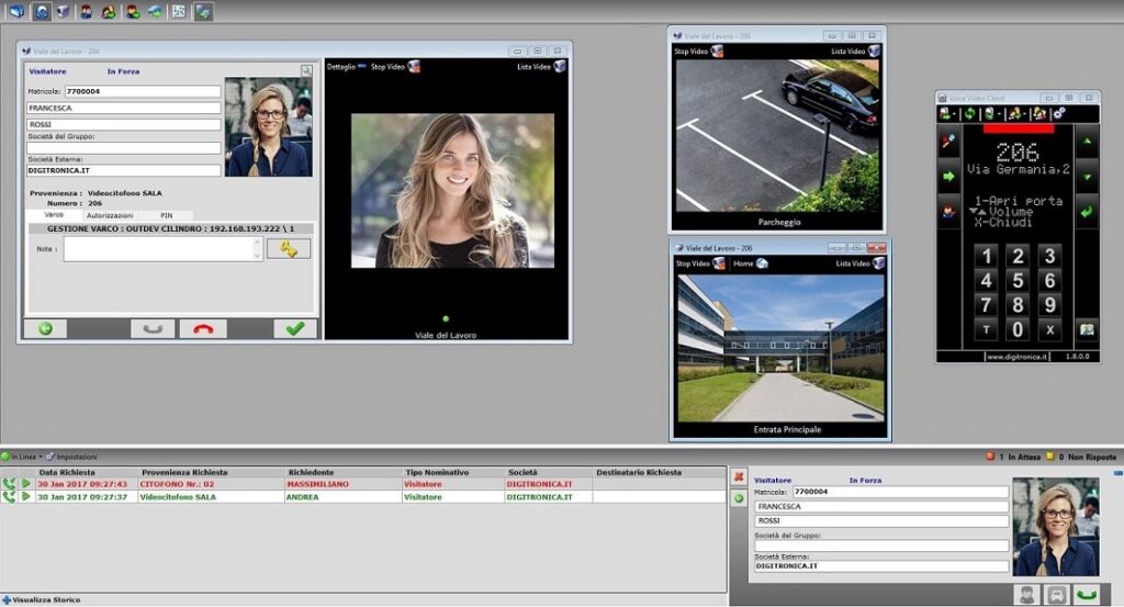 L’interazione dell’utente con il sistema può essere verbale, visiva e/o attivata dalla lettura di una credenziale. Il software di Digitronica.IT si collega al database aziendale consentendo all’operatore che vigila dalla centrale di comunicare tramite audio/video, controllare i dati dell’utente, le autorizzazioni e, infine, effettuare l’apertura del varco.